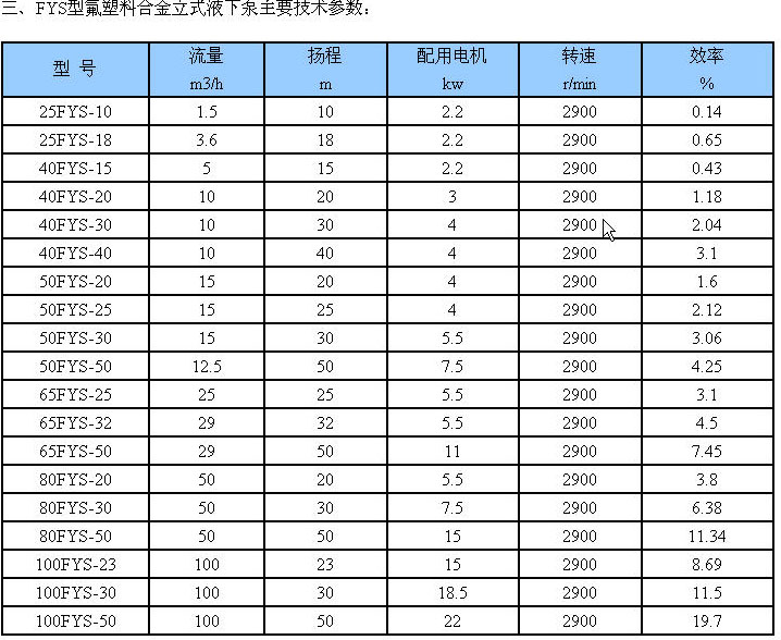 FYS系列氟塑料液下泵![]() FYS系列氟塑料液下泵 更多信息一、產(chǎn)品概述: FYS系列氟塑料合金立式液下泵是我公司結(jié)合國(guó)內(nèi)外同類產(chǎn)品研制生產(chǎn)的一種單級(jí)單吸長(zhǎng)軸式液下泵,該泵適用于輸送溫度在 二、泵型號(hào)意義說明: