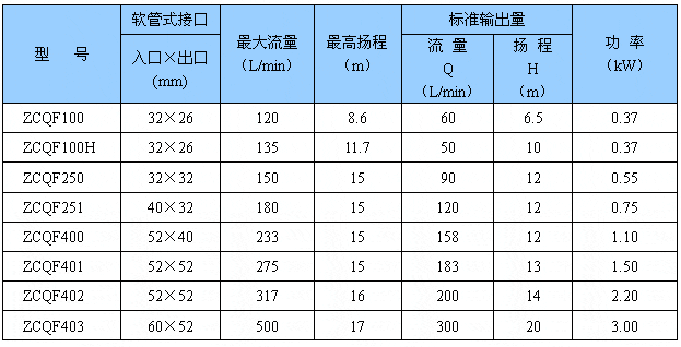 一、產(chǎn)品概述: ZCQF型四氟自吸磁力驅(qū)動(dòng)泵(簡稱磁力自吸泵)是將永磁聯(lián)軸器的工作原理用于離心泵的新產(chǎn)品,設(shè)計(jì)合理,工藝 ,具有全密封,無泄漏,耐腐蝕的特點(diǎn),其性能達(dá)到國外同類產(chǎn)品的 水平。 二、產(chǎn)品特點(diǎn): 1、磁力自吸泵以靜密封取代動(dòng)密封,使泵的過流部件處于完全密封狀態(tài),徹底解決了其它泵的機(jī)械密封無法避免的跑,冒,滴之蔽病,磁力泵選用耐腐蝕, 的增強(qiáng)聚丙稀、四氟合金、氮化硅,碳石墨,鋼玉陶磁,作為制造材料,并采用不銹鋼的連接架,為客戶解決了老為環(huán)境空氣腐蝕而經(jīng)常更換聯(lián)接架而煩惱。 2、即有CQF型磁力驅(qū)動(dòng)泵的功能,又集自吸于一身,不需底閥和引灌水,具備了自吸性能好,自吸 時(shí)間短,效率高,并能在無液的情況下而空載運(yùn)轉(zhuǎn),自吸高度 三、產(chǎn)品用途: 磁力泵結(jié)構(gòu)緊湊,外型美觀,體積小,躁聲低,運(yùn)行可靠,使用維修方便。可 用于化工,制藥,石油,電鍍,食品,電影照相洗印,科研機(jī)構(gòu),國防工業(yè)等單位抽送酸,堿液,油類稀有貴重液,毒液,揮發(fā)性液體,以及循環(huán)水設(shè)備配套,過率機(jī)配套。特別是易漏,易燃,易爆液體的抽送,防爆電動(dòng)機(jī)選用此泵則更為理想。 四、工作原理: 本泵采用外混式軸向回水泵體結(jié)構(gòu),泵體由吸液室、儲(chǔ)液室、蝸殼、回流孔、氣液分離室等部件組成。泵啟動(dòng)后,在離心力的作用下,吸水室中的剩余液與進(jìn)液管路中的空氣被葉輪攪拌成氣水混合物,混合物經(jīng)蝸殼進(jìn)入氣液分離室,隨著速度減慢,導(dǎo)致氣水分離,空氣由泵出液口排出,液經(jīng)回水孔返回泵內(nèi),經(jīng)過多次循環(huán),進(jìn)液管道中的空氣排凈,使泵內(nèi)形成一定的真空度,達(dá)到自吸的作用。 五、性能參數(shù):
