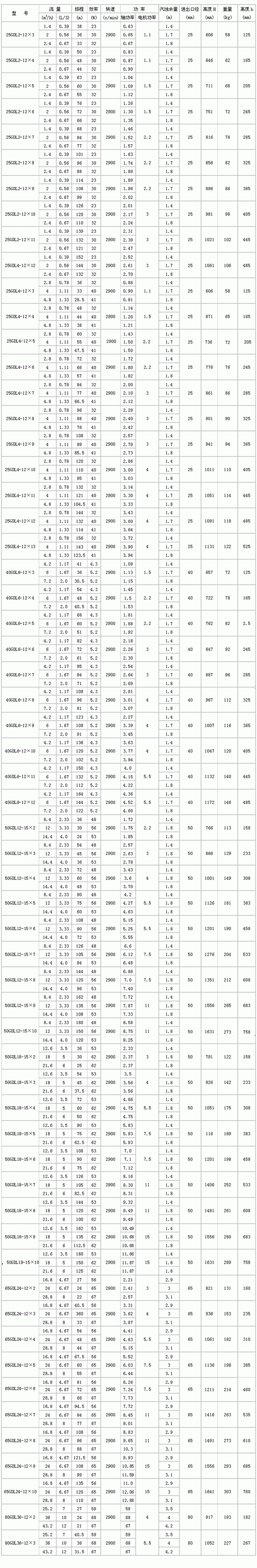應(yīng)用于高壓運行系統(tǒng)中冷熱清水的循環(huán)和增壓、高層建筑多臺泵并聯(lián)供水、消防、鍋爐給水和冷卻水系統(tǒng)及各種沖洗液的輸送等。 流量:2 揚程:24 功率:1.1-90kw; 轉(zhuǎn)速:2900r/min; 口徑:φ25-φ150; 溫度范圍:-15-+ 工作壓力:≤2.5Mpa。 三、型號意義: