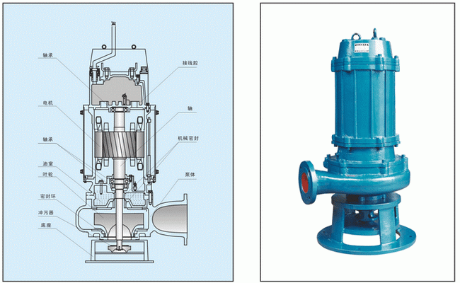 SYWQ型沖污式排污泵是我公司在WQ型排污泵的基礎(chǔ)上改進型的排污泵。它是在WQ型排污泵的底部增設(shè)了一只沖污器,隨著電機的高速旋轉(zhuǎn),沖污器對泵體周圍的介質(zhì)進行旋轉(zhuǎn)式?jīng)_擊,有效地把污水池中的淤泥和沉淀物沖起攪均排出,其有效沖擊范圍可以達到10m2-100m2。特別適用于工業(yè)、污水處理廠和樓宇的污水池含沉淀物污水排放 執(zhí)行標(biāo)準(zhǔn) GB/T12785-1991潛水電泵試驗方法 JB/T5118-2001污水污物潛水電泵 ![]() |