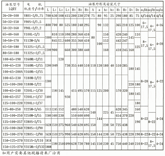 ![]() LQRY系列熱油泵外形安裝尺寸表: