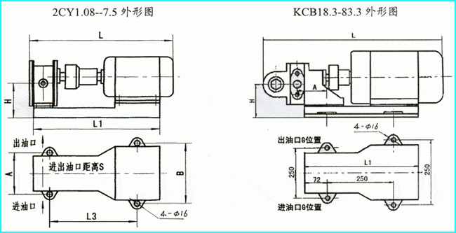 2CY、KCB齒輪式輸油泵|外形安裝尺寸(1)2CY、KCB齒輪式輸油泵外形安裝尺寸圖: