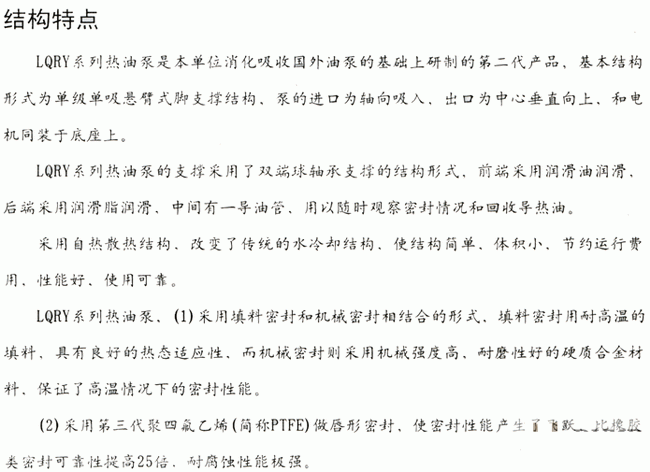 LQRY型熱油泵|結構特點LQRY熱油泵|結構特點