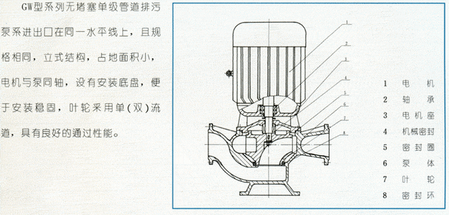GW型無堵塞管道排污泵|結構圖