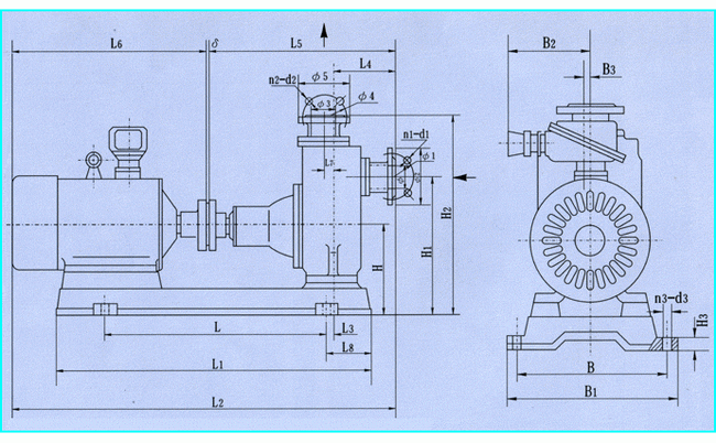 ZW型自吸式無堵塞排污泵外形安裝尺寸圖: