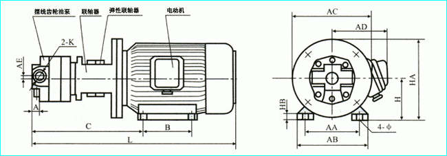 BB、BBG型內嚙合擺線齒輪泵|外形安裝尺寸BB、BBG型內嚙合擺線齒輪泵外形安裝尺寸圖: