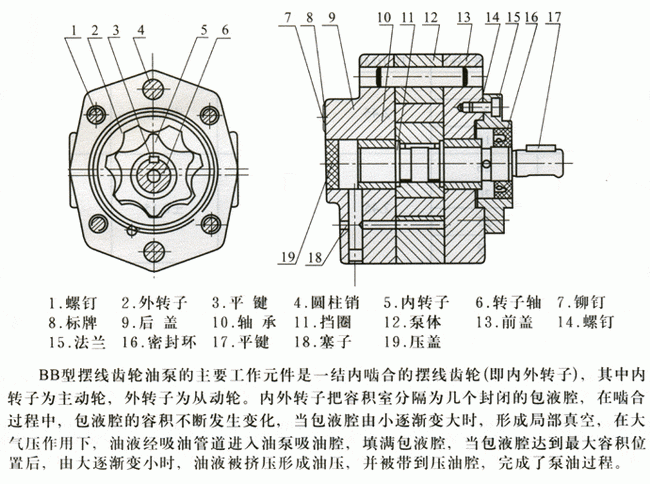 BB、BBG型內(nèi)嚙合擺線齒輪泵|工作原理BB、BBG型內(nèi)嚙合擺線齒輪泵工作原理: