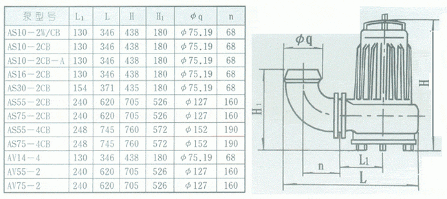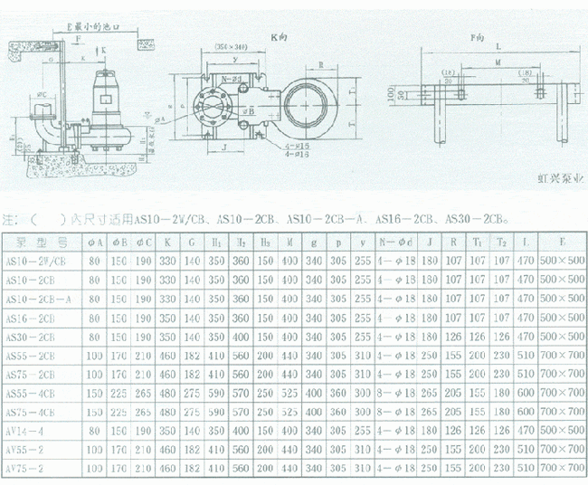 S、AV型潛水式排污泵外形安裝尺寸表: