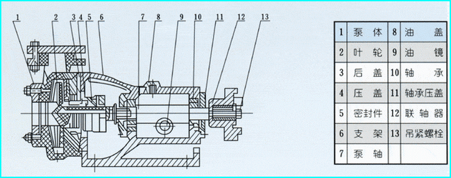 FSB型氟塑料合金離心泵|結(jié)構(gòu)圖FSB型氟塑料合金離心泵結(jié)構(gòu)圖: