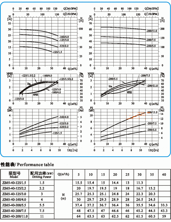 ZS型不銹鋼臥式單級離心泵曲線圖65-40-***