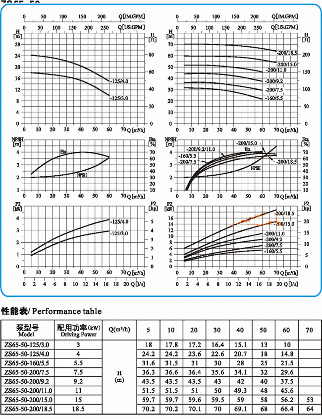 ![]() ZS型不銹鋼臥式單級離心泵曲線圖65-50-***
