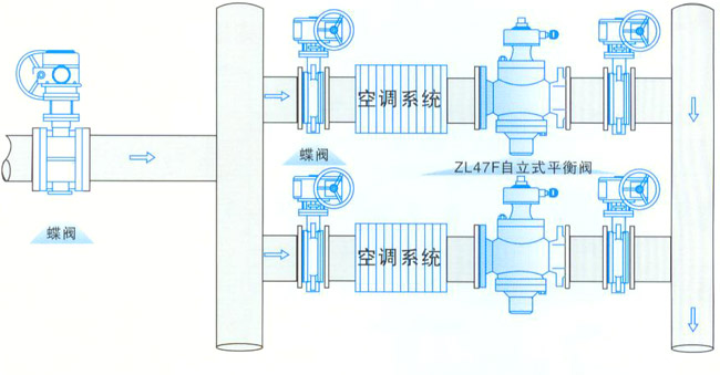 產品概述 ZL47F自力平衡閥,是一種利用介質本身的壓力變化莫測來進行自我調控,從而保持流經被控系統流量平衡的閥門,具有流量指示,可在線調節,適用于供熱及空調系統等非腐蝕性介質的流量控制。運行前一次性測試調節,可使系統流量自動恒定在預先設置的設定值。該閥門流量調節準確,操作簡單,動作平衡,性能可靠,使用壽命長。 主要技術參數 公稱壓力:1.6MPa 公稱通徑:15~400mm 適用介質:水、油等非腐蝕性液體 適用溫度:0~120℃ 法蘭標準:GB/T 17421.6 GB/T 9113 試驗標準:GB/T 13927 API 598 典型安裝示意圖