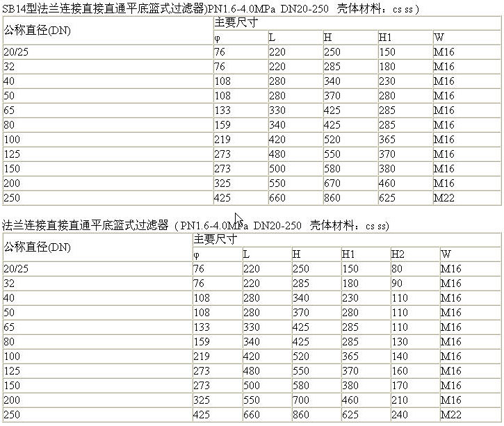 SB14型、SB34型法蘭連接直接直通平底籃式過(guò)濾器價(jià)格