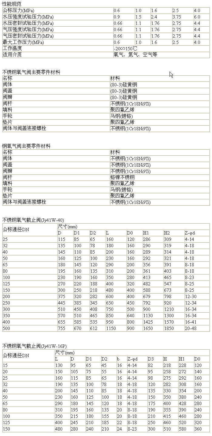 1、本產品系列特殊設計的不銹鋼或銅合金截止閥,主要用于氧壓機加壓后的管道。